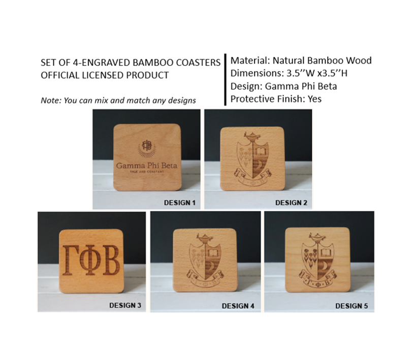 SET OF 4-ENGRAVED BAMBOO COASTERS (Official Licensed)