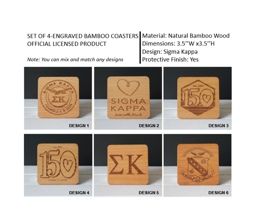 Note: You can mix and match any designs and request special engraving on the back of each coaster. Email us your request at info@greek-zone.com